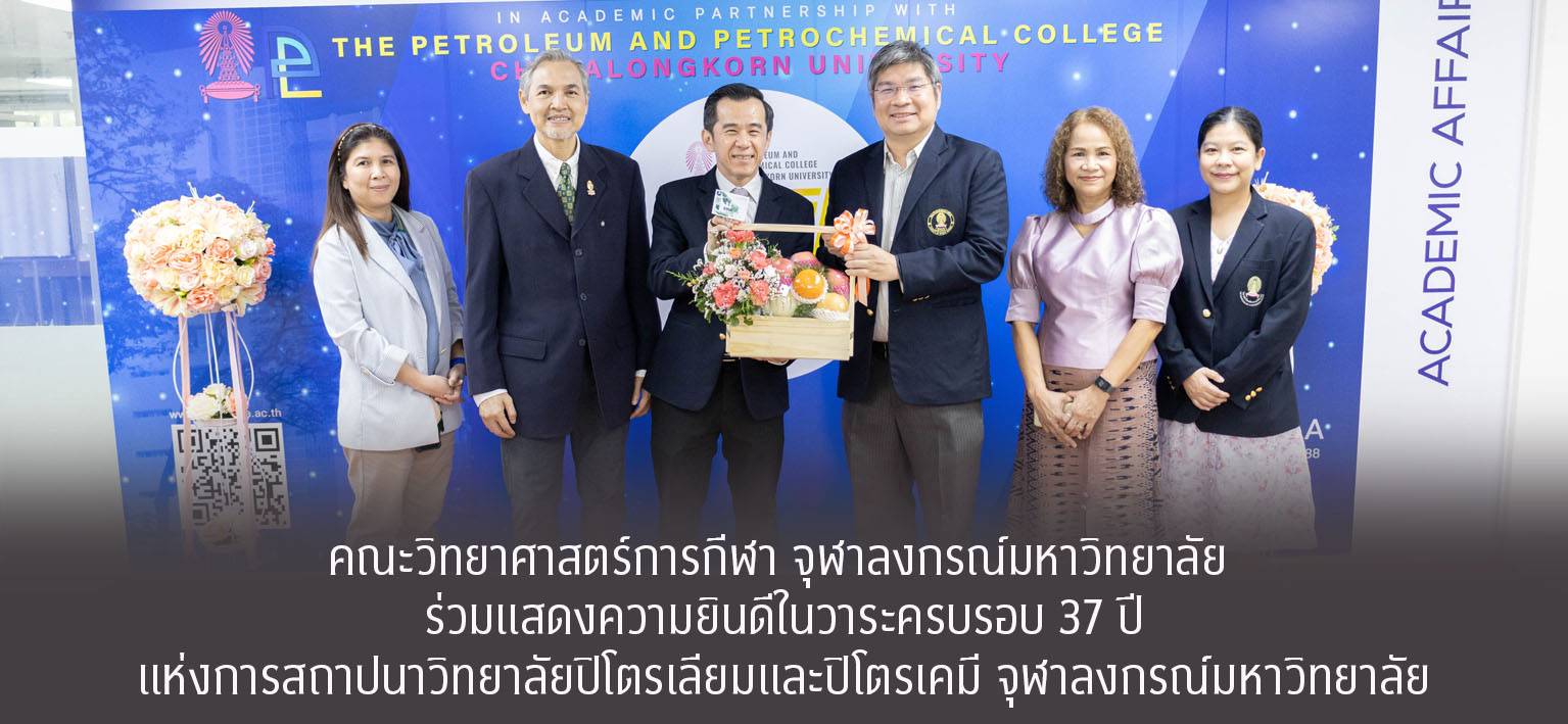 วันที่ 22 กันยายน 2568 คณะวิทยาศาสตร์การกีฬา จุฬาลงกรณ์มหาวิทยาลัย โดย รองศาสตราจารย์ ดร.ชัยพัฒน์ หล่อศิริรัตน์ คณบดี ร่วมแสดงความยินดีเนื่องในวาระครบรอบ 37 ปี แห่งการสถาปนาวิทยาลัยปิโตรเลียมและปิโตรเคมี จุฬาลงกรณ์มหาวิทยาลัย
