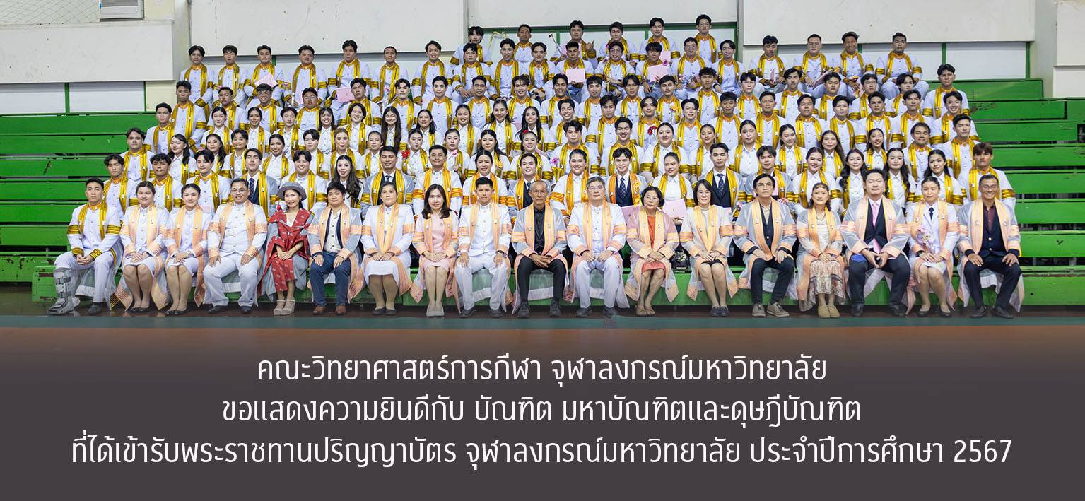 คณะวิทยาศาสตร์การกีฬา จุฬาลงกรณ์มหาวิทยาลัย ขอแสดงความยินดีกับ บัณฑิต มหาบัณฑิตและดุษฎีบัณฑิต ที่ได้เข้ารับพระราชทานปริญญาบัตร จุฬาลงกรณ์มหาวิทยาลัย ประจำปีการศึกษา 2567 วันพุธที่ 1 ตุลาคม 2568