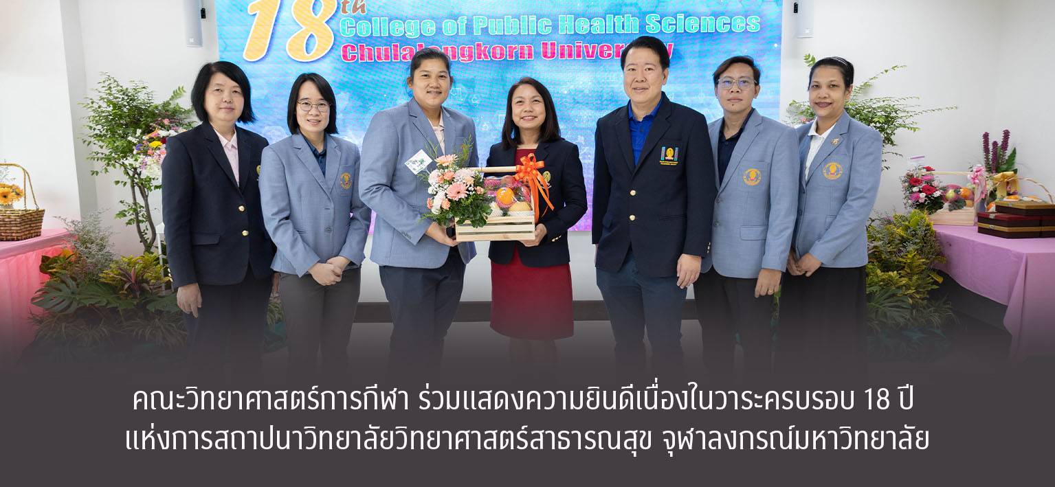 วันที่ 3 ตุลาคม 2568 คณะวิทยาศาสตร์การกีฬา จุฬาลงกรณ์มหาวิทยาลัย โดย รองศาสตราจารย์ ดร.วรรณพร ทองตะโก และผู้ช่วยศาสตราจารย์ ดร.คนางค์ ศรีหิรัญ รองคณบดี ร่วมแสดงความยินดีเนื่องในวาระครบรอบ 18 ปี แห่งการสถาปนาวิทยาลัยวิทยาศาสตร์สาธารณสุข จุฬาลงกรณ์มหาวิทยาลัย