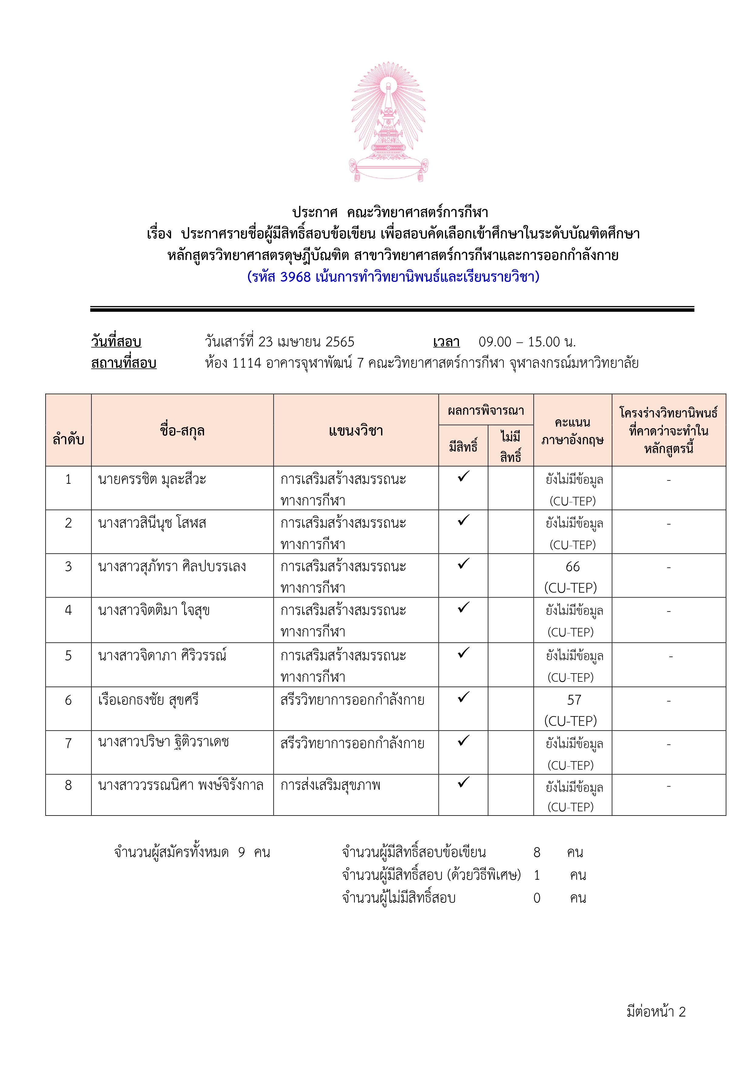 ประกาศรายชื่อผู้มีสิทธิ์เข้าสอบข้อเขียน ป.เอก ต้น 65