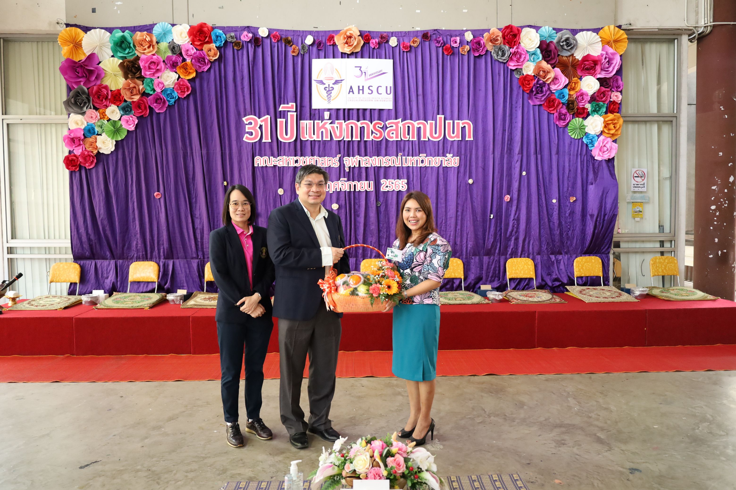 วันที่ 15 พฤศจิกายน 2565 คณะวิทยาศาสตร์การกีฬา จุฬาลงกรณ์มหาวิทยาลัย โดย รองศาสตราจารย์ ดร.ชัยพัฒน์ หล่อศิริรัตน์ คณบดี และ ผู้ช่วยศาสตราจารย์ ดร.คนางค์ ศรีหิรัญ รองคณบดี ร่วมแสดงความยินดีในวาระครบรอบ 31 ปี แห่งการสถาปนาคณะสหเวชศาสตร์ จุฬาลงกรณ์มหาวิทยาลัย