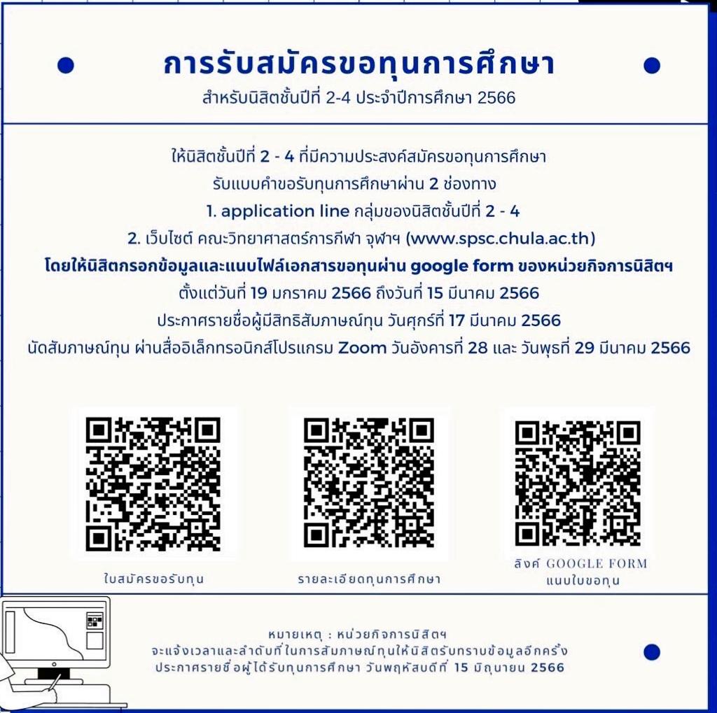 รับสมัครขอทุนการศึกษา ประจำปีการศึกษา 2566 (สำหรับนิสิตคณะวิทยาศาสตร์การกีฬา ระดับปริญญาตรี ชั้นปีที่ 2-4)