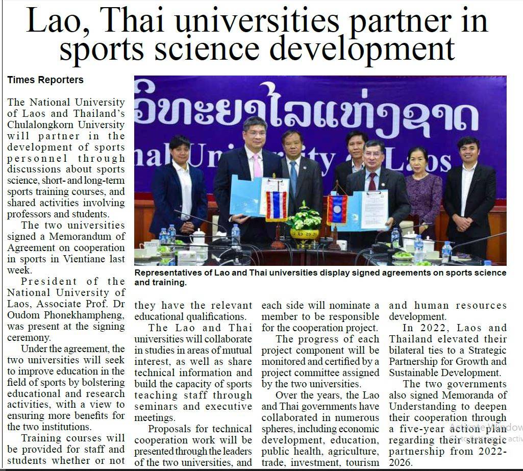 คณบดี (รศ.ดร.ชัยพัฒน์ หล่อศิริรัตน์) ลงนามข้อตกลง (MOA) ระหว่างคณะวิทยาศาสตร์การกีฬา จุฬาลงกรณ์มหาวิทยาลัย กับมหาวิทยาลัยแห่งชาติลาว ระหว่างวันที่ 20 - 21 มิถุนายน 2566