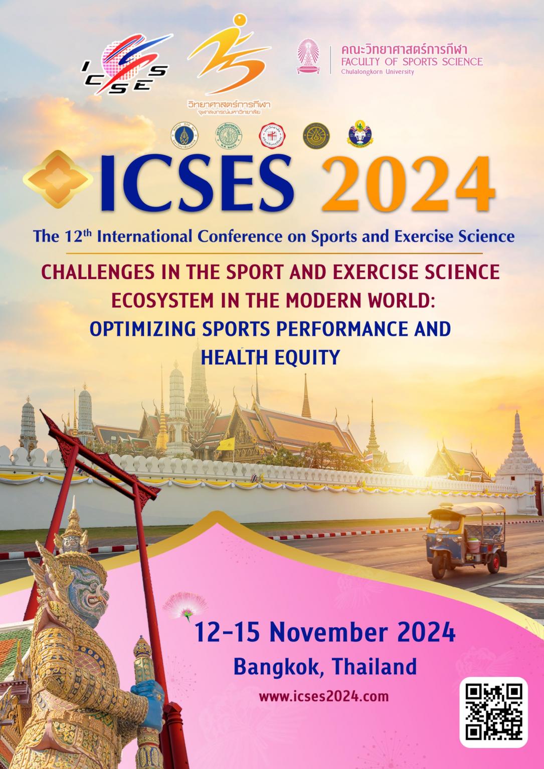 คณะวิทยาศาสตร์การกีฬา จุฬาลงกรณ์มหาวิทยาลัย มีความยินดีเรียนเชิญท่านผู้ที่สนใจทุกท่าน เข้าร่วมงานประชุมวิชาการนานาชาติเนื่องในโอกาสครบรอบ 25 ปี คณะวิทยาศาสตร์การกีฬา The Faculty of Sports Science at Chulalongkorn University is commemorating its 25th anniversary. With great pride, we declare that we will arrange the international conference and extend an invitation to you to attend; *****The 12th International Conference on Sports and Exercise Science: Optimizing Sports Performance and Health Equity: Challenges in the Sports and Exercise Science Ecosystem in the Modern World***** วันที่ 13-15 พฤศจิกายน พ.ศ. 2567 November 13-15, 2024