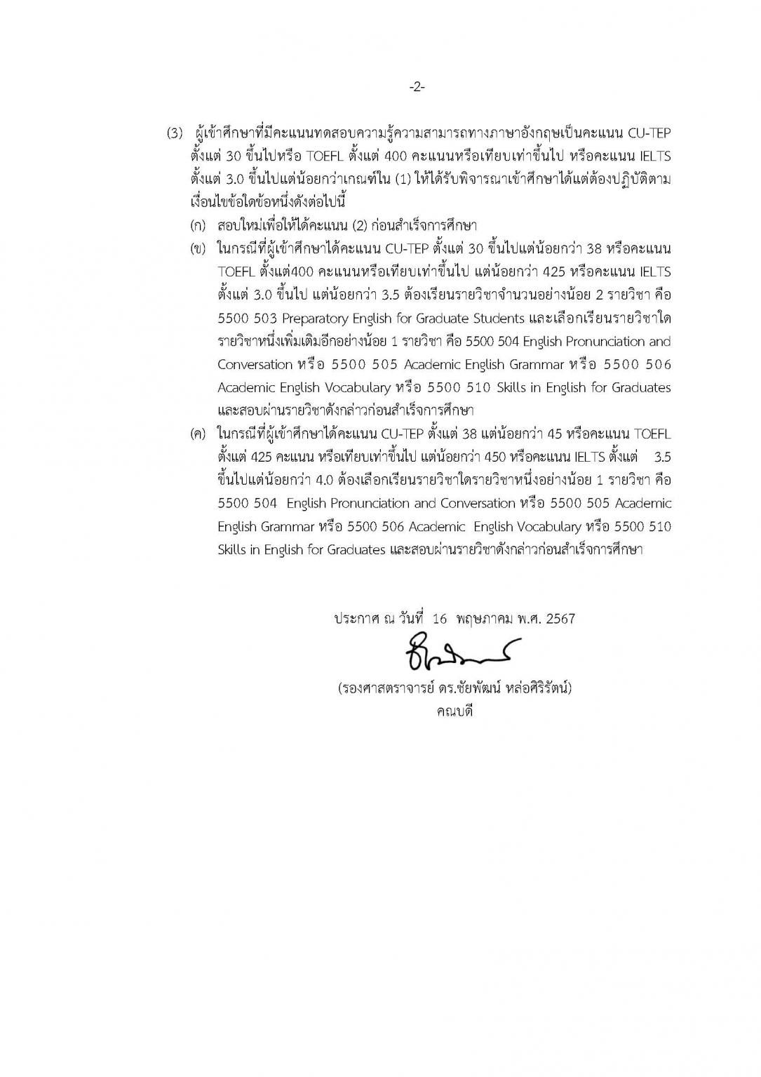 รายชื่อผู้มีสิทธิ์เข้าศึกษาในระดับบัณฑิตศึกษา ประจำภาคการศึกษาต้น ปีการศึกษา 2567