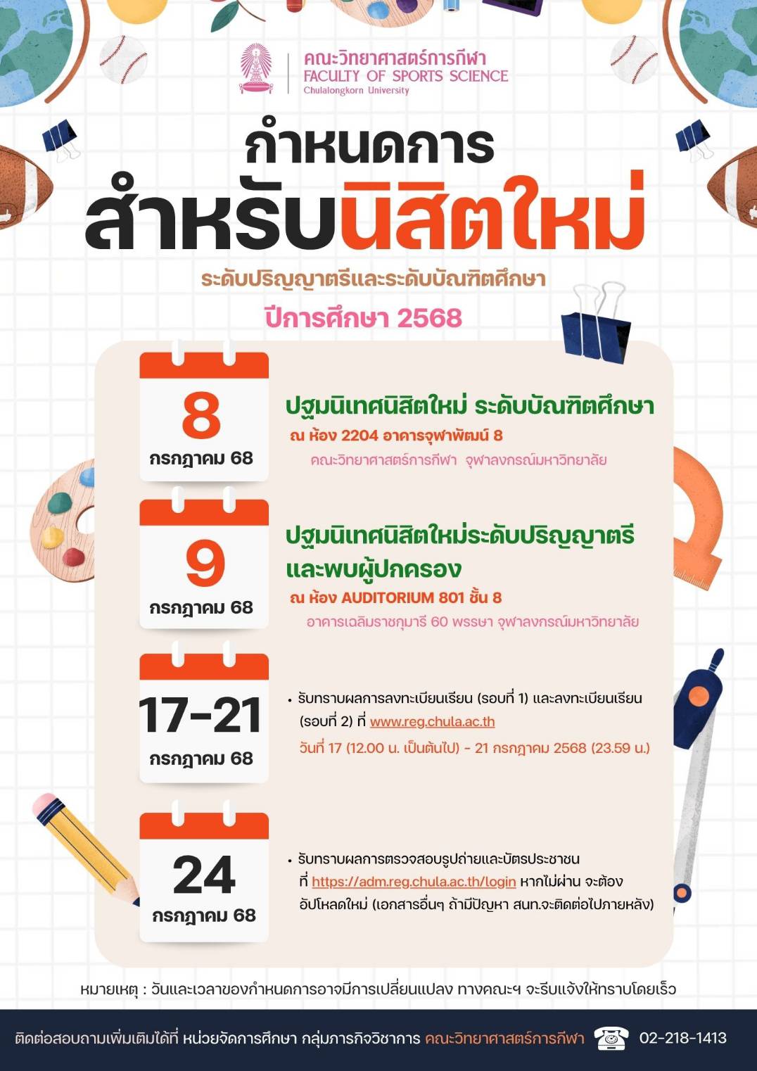 กำหนดการสำหรับนิสิตใหม่ ระดับปริญญาตรีและระดับบัณฑิตศึกษา ปีการศึกษา 2568