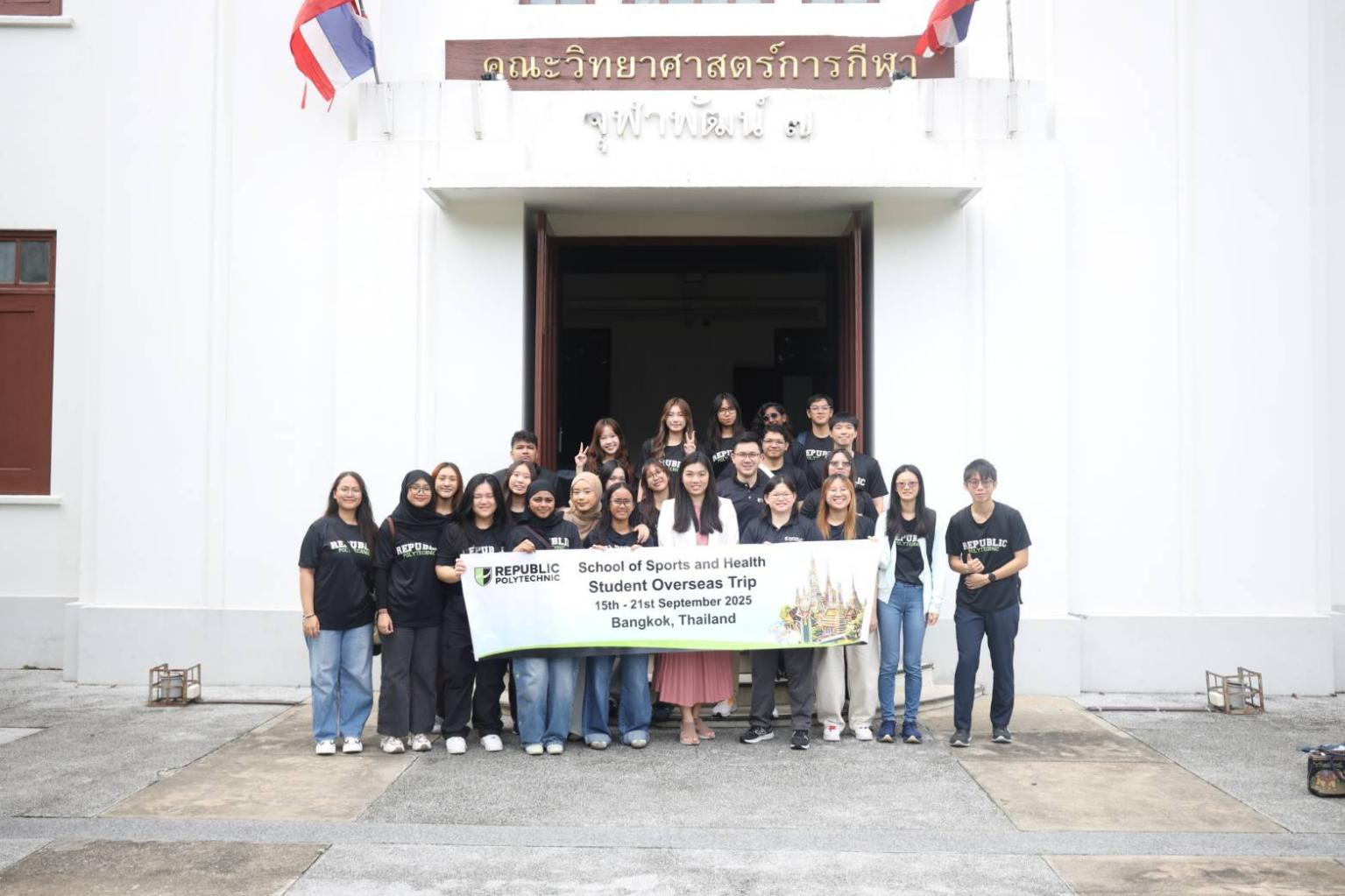 คณะวิทยาศาสตร์การกีฬา จุฬาลงกรณ์มหาวิทยาลัย ให้การต้อนรับคณาจารย์และนิสิตจาก Republic Polytechnic (School of Sports and Health: SSH), Singapore เมื่อวันที่ 19 กันยายน 2568 การศึกษาดูงานในครั้งนี้มีวัตถุประสงค์เพื่อแลกเปลี่ยนเรียนรู้ด้านวิชาการและงานวิจัย โดยมี ผู้ช่วยศาสตราจารย์ ดร.ณัติพร นกแก้ว (รองคณบดี) และ รองศาสตราจารย์ ดร.วรรณพร ทองตะโก (รองคณบดี) ให้การต้อนรับ พร้อมด้วย รองศาสตราจารย์ ดร.ชัยพัฒน์ หล่อศิริรัตน์ (คณบดี) นำเยี่ยมชมคณะฯ ทั้งสองฝ่ายได้ร่วมกันนำเสนอและแลกเปลี่ยนความรู้ด้านวิทยาศาสตร์การกีฬาในปัจจุบัน