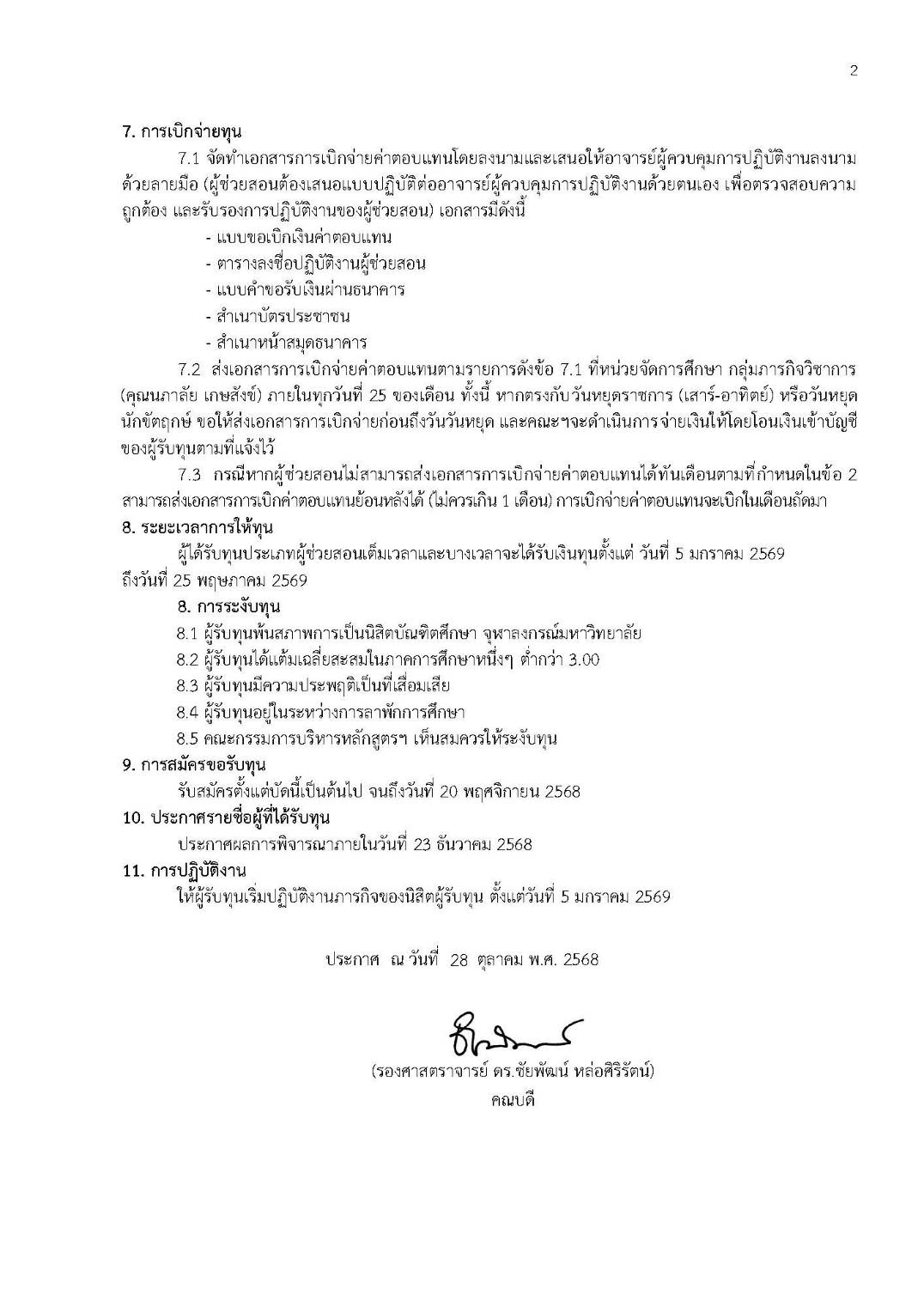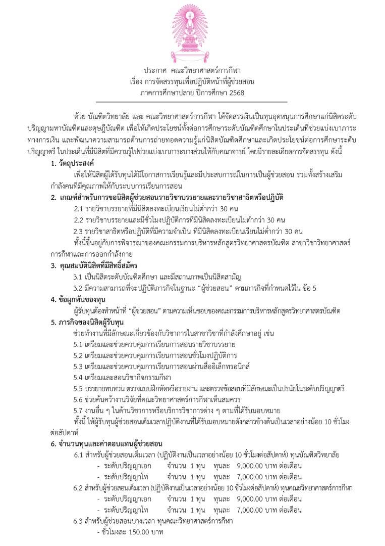 ประกาศรับสมัครทุนผู้ช่วยสอน ภาคการศึกษาปลาย 2568.pdf